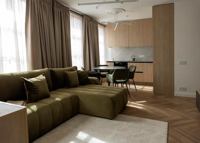Modern Luxury Apartment In Old Town Klaipėda med 1 sovrum, som ligger inom 5 minuters promenad från Culture Factory, erbjuder snabb tillgång till många turistattraktioner i närheten.